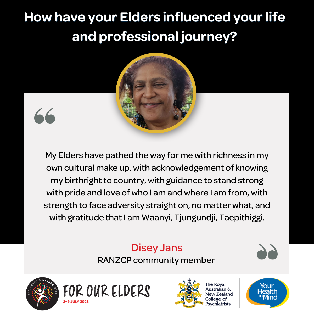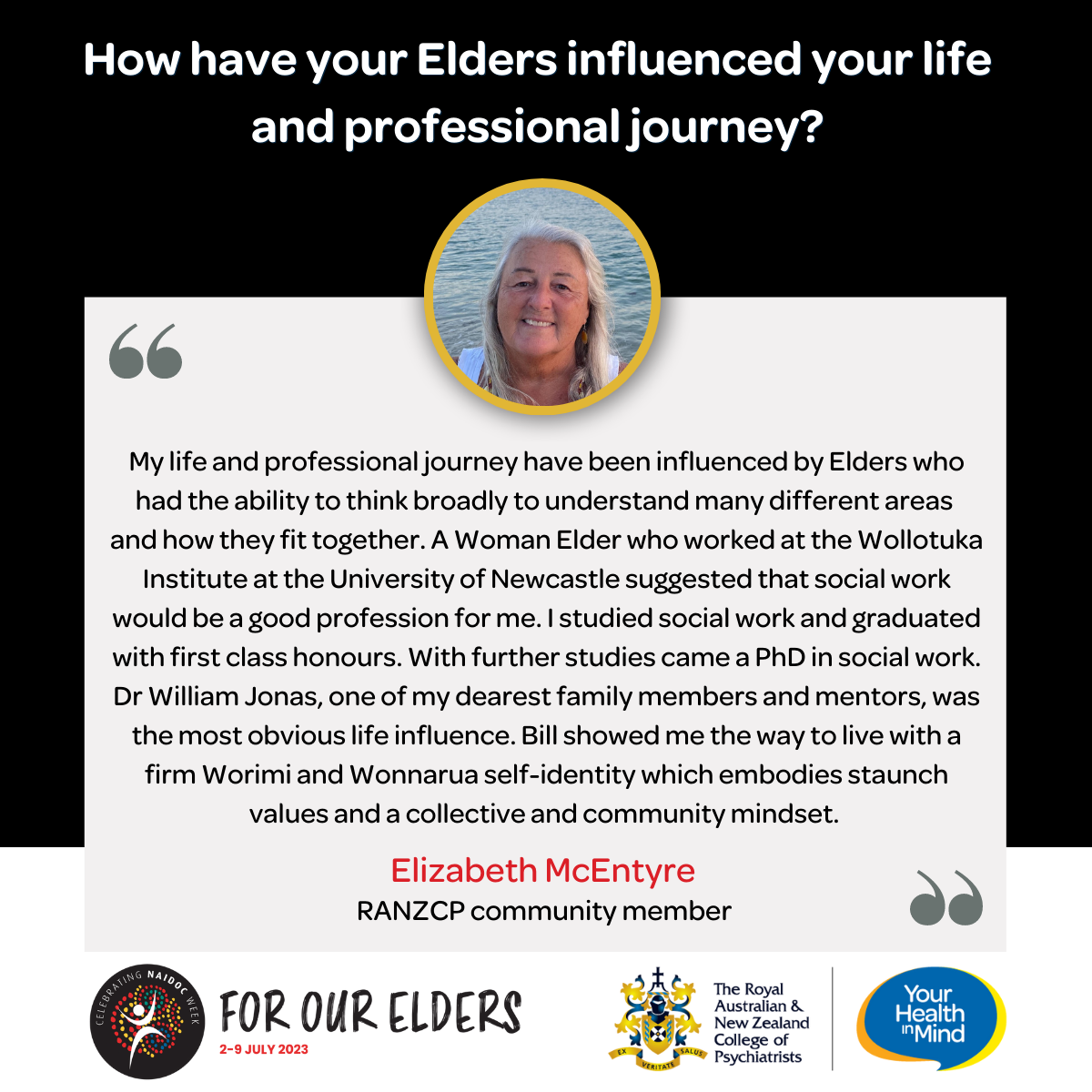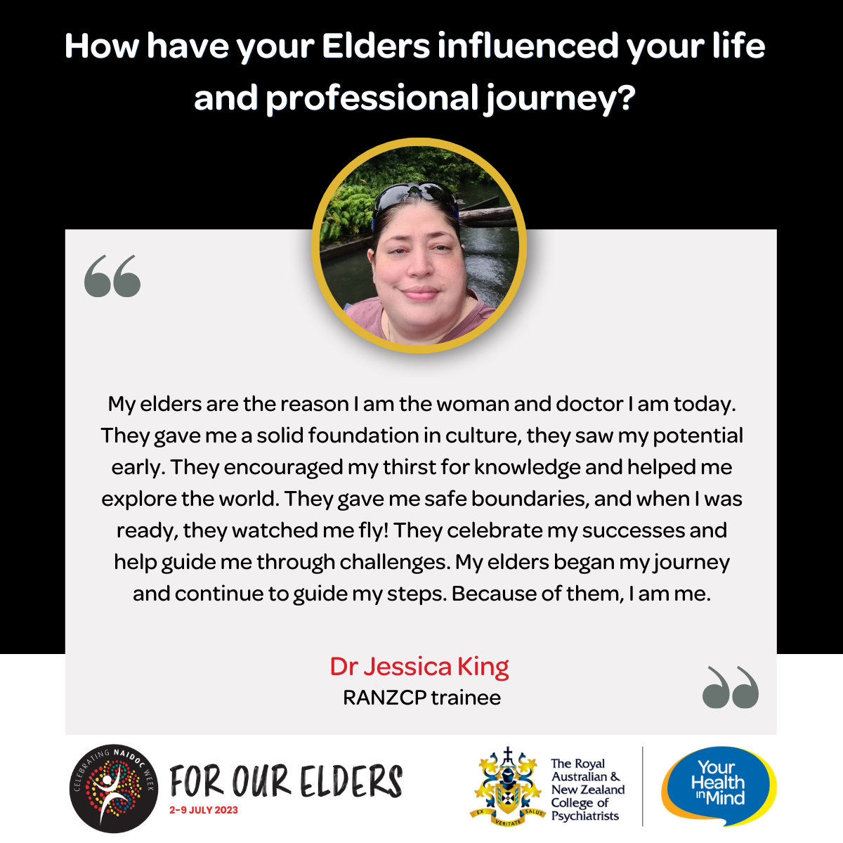 NAIDOC Week, from 2–9 July 2023, is a time for us to celebrate the history and culture of our Aboriginal and Torres Strait Islander people. To commemorate NAIDOC Week, we invited some of our Aboriginal and Torres Strait Islander members and community members to share their reflections on the theme for this year, For Our Elders.