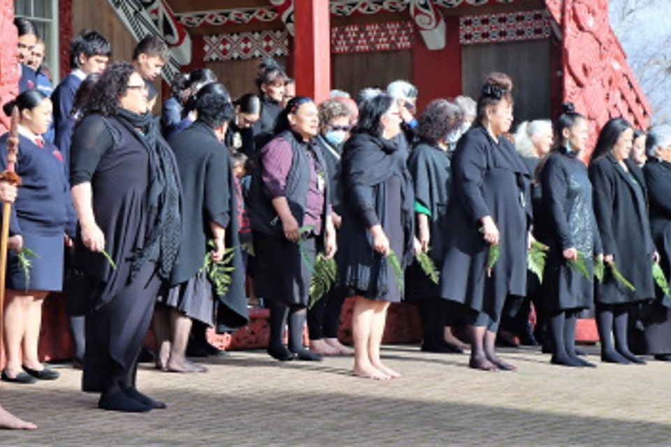 A pōhiri was performed to welcome the manuhiri (guests) onto the marae, before the group gathered inside for the ceremony.